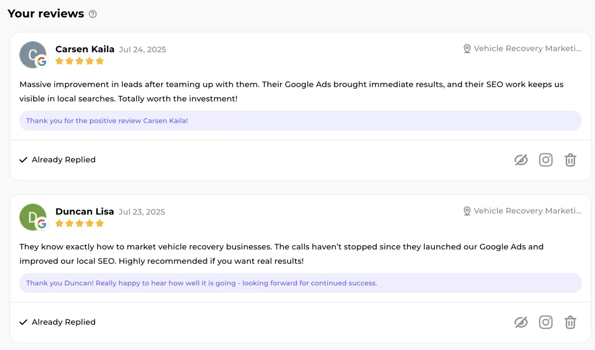Gather authentic, positive reviews from satisfied clients, professionally manage and respond to feedback, and build trust and credibility in your local market.